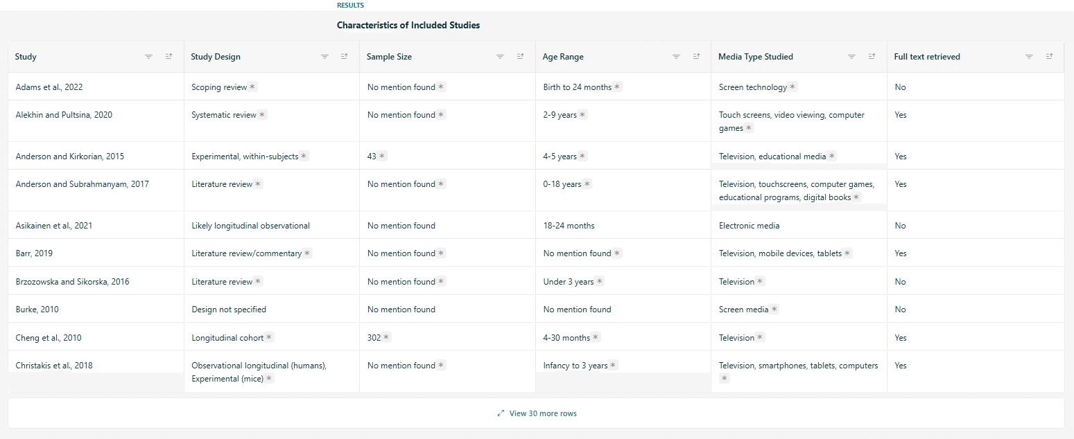 In addition, standard literature searches automatically extract key elements from each paper.